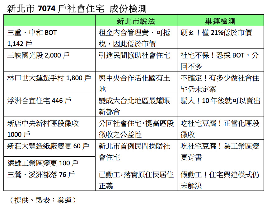新北市7,074戶社會住宅計畫內容(巢運提供、製表)
