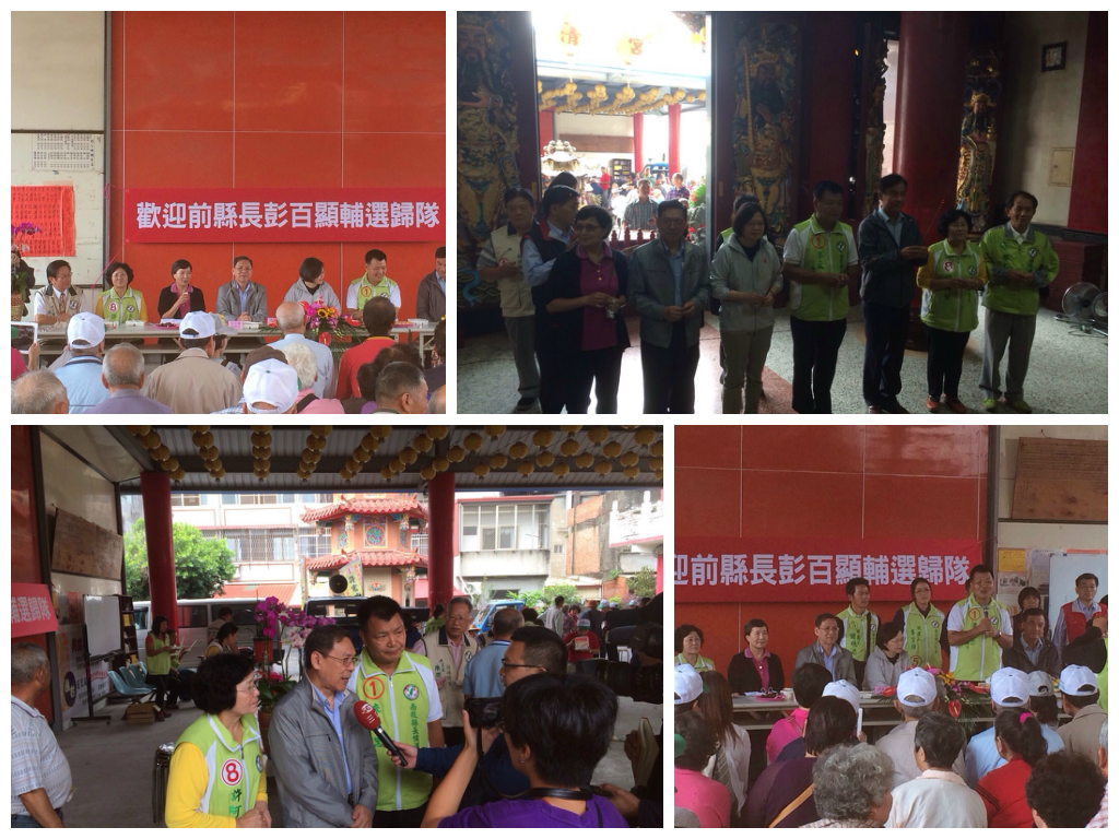 蔡英文表示,在葉菊蘭、蘇嘉全奔走、溝通下,老縣長彭百顯決定重新加入民進黨團隊與大家一起打拚,他不只是希望未來南投在一個好縣長的帶領之下,可以愈來愈好,他更關心台灣的未來,希望民進黨在這次選舉取得佳績,讓各地可以感受到綠色執政的優質,也讓台灣的政治體質變得更好,使得國家未來在中央層級治理的基礎更加穩固,因此他義不容辭重回民進黨輔選團隊,與南投鄉親一起拚這一局。
