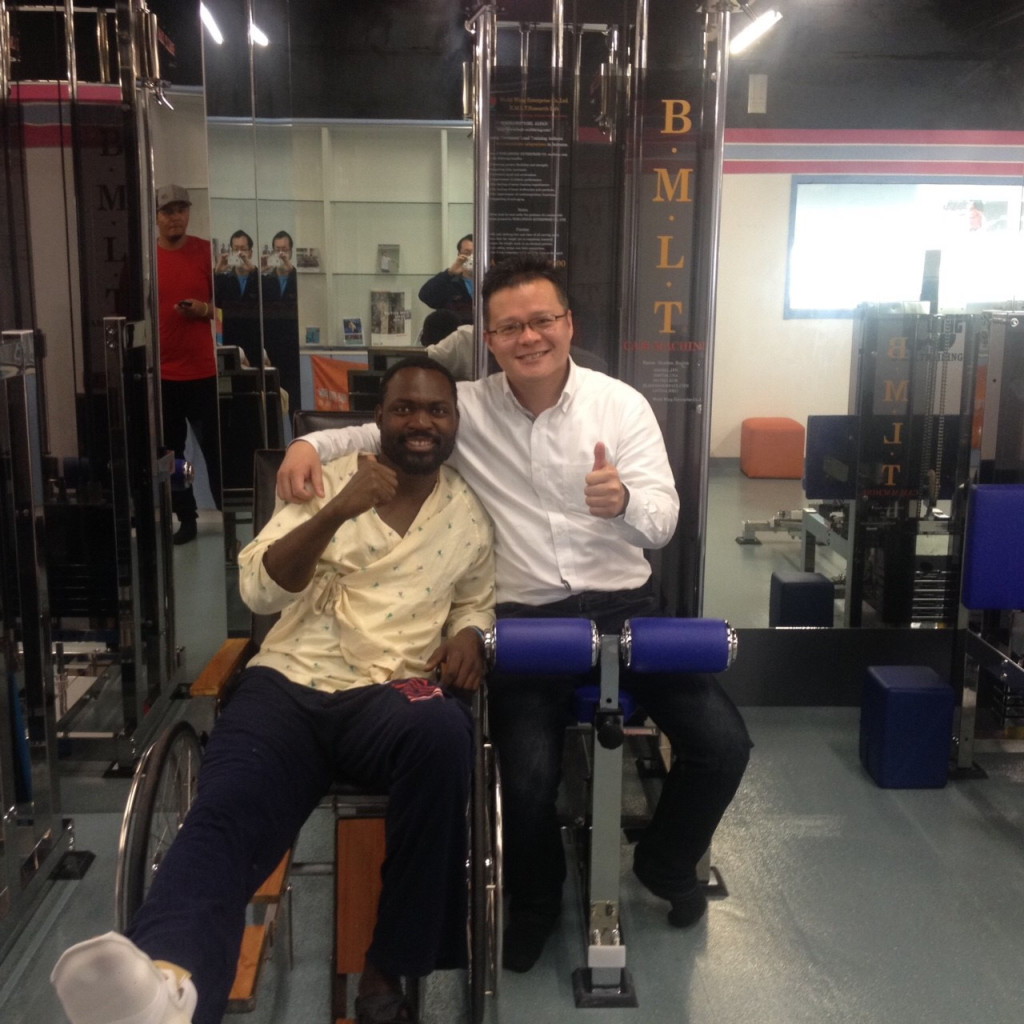 統一獅洋將飛力士術後進行初動負荷訓練(上圖)、與主治醫師、本文作者合影(下圖)。
