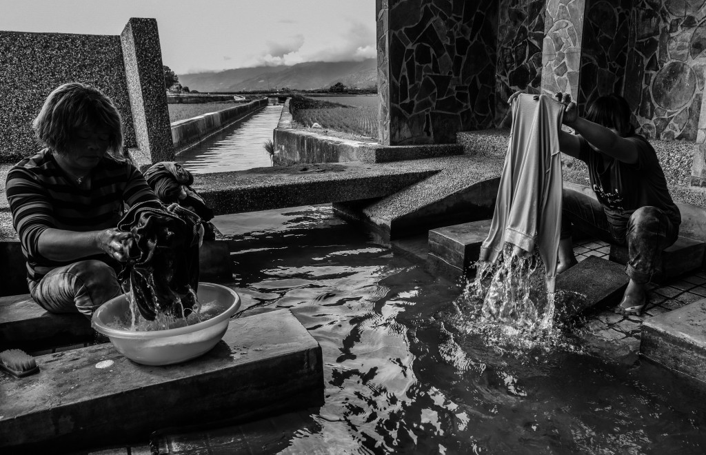 台東池上錦園洗衣亭晨昏聚集婦女時到水圳洗滌衣物、閒話家常,宛如另類的「田邊俱樂部」。旅客總好奇詢問「怎不用洗衣機?」洗衫人洗衣速度飛快,不厭其煩耐心回答,農事服必需藉用刷子徹底刷洗去除土味。「洗衣機洗不乾淨只剩脫水功能」,無法取代兼具社交俱樂部。