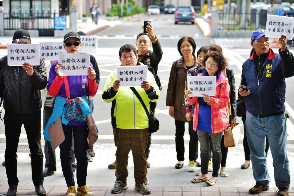 會議進行到一半時,場外忽然出現抗議的聲音,中華統一促進黨的十幾名成員高舉「台獨假人權,破壞真和平」的標語,大喊要陳浩天滾回去。其中一名抗議群眾說,「獨立」根本是假議題,同樣都是在中國的土地上,談何獨立?場內也有人士不滿,出去回嗆。不過由於警方在場,並未發生衝突。
