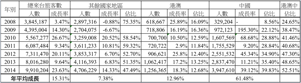2008~2014來台旅客人數